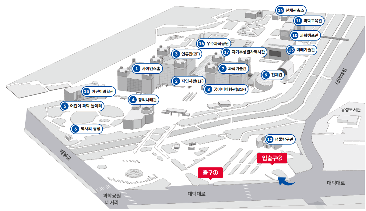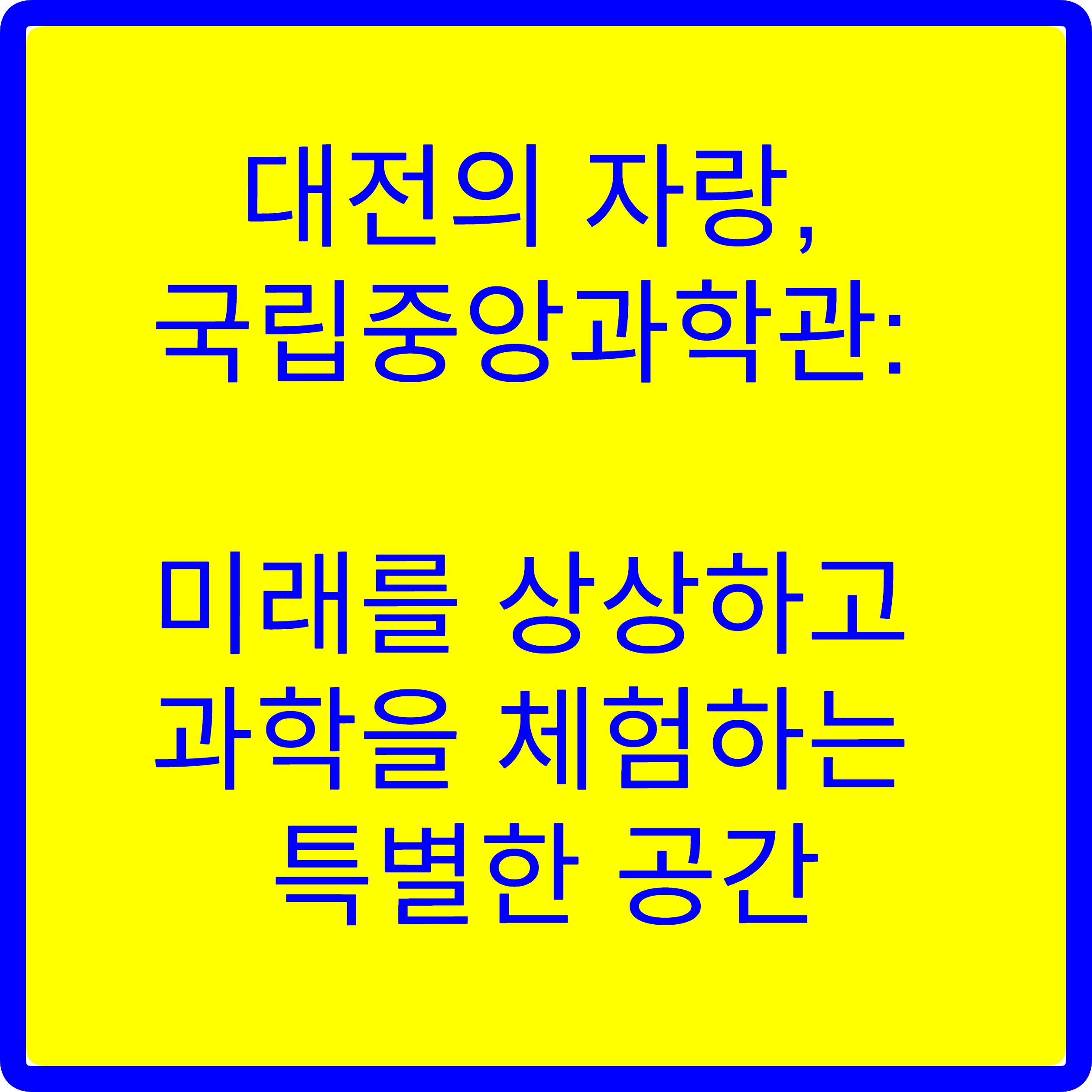 대전의 심장부에 위치한 국립중앙과학관에서 과학의 경이로움을 발견하고, 미래를 상상하며, 즐거운 추억을 만들어 가시기 바랍니다. 과학과 함께하는 특별한 하루가 여러분을 기다리고 있습니다.