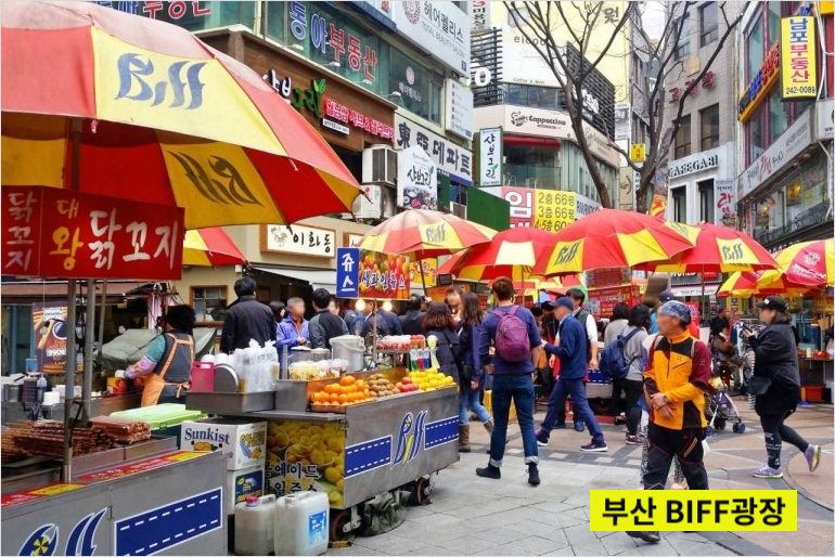 BIFF광장 길거리음식 종류는 정말 다양합니다. 부산의 대표 길거리 음식인 씨앗호떡, 비빔당면, 어묵, 토스트, 떡볶이 등을 맛보실 수 있습니다. 특히 부산국제영화제 기간에는 더욱 활기찬 분위기를 느끼실 수 있으며, 다양한 문화 행사와 공연도 함께 즐기실 수 있습니다.