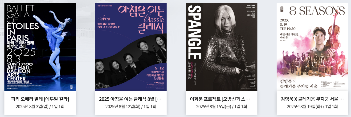 대전예술의전당은 앞으로도 시민들과 함께 호흡하며, 모든 이들에게 열린 문화공간으로서의 역할을 충실히 해나갈 것입니다. 문화예술을 통한 삶의 풍요로움을 추구하시는 모든 분들께 대전예술의전당을 자신 있게 추천드립니다.